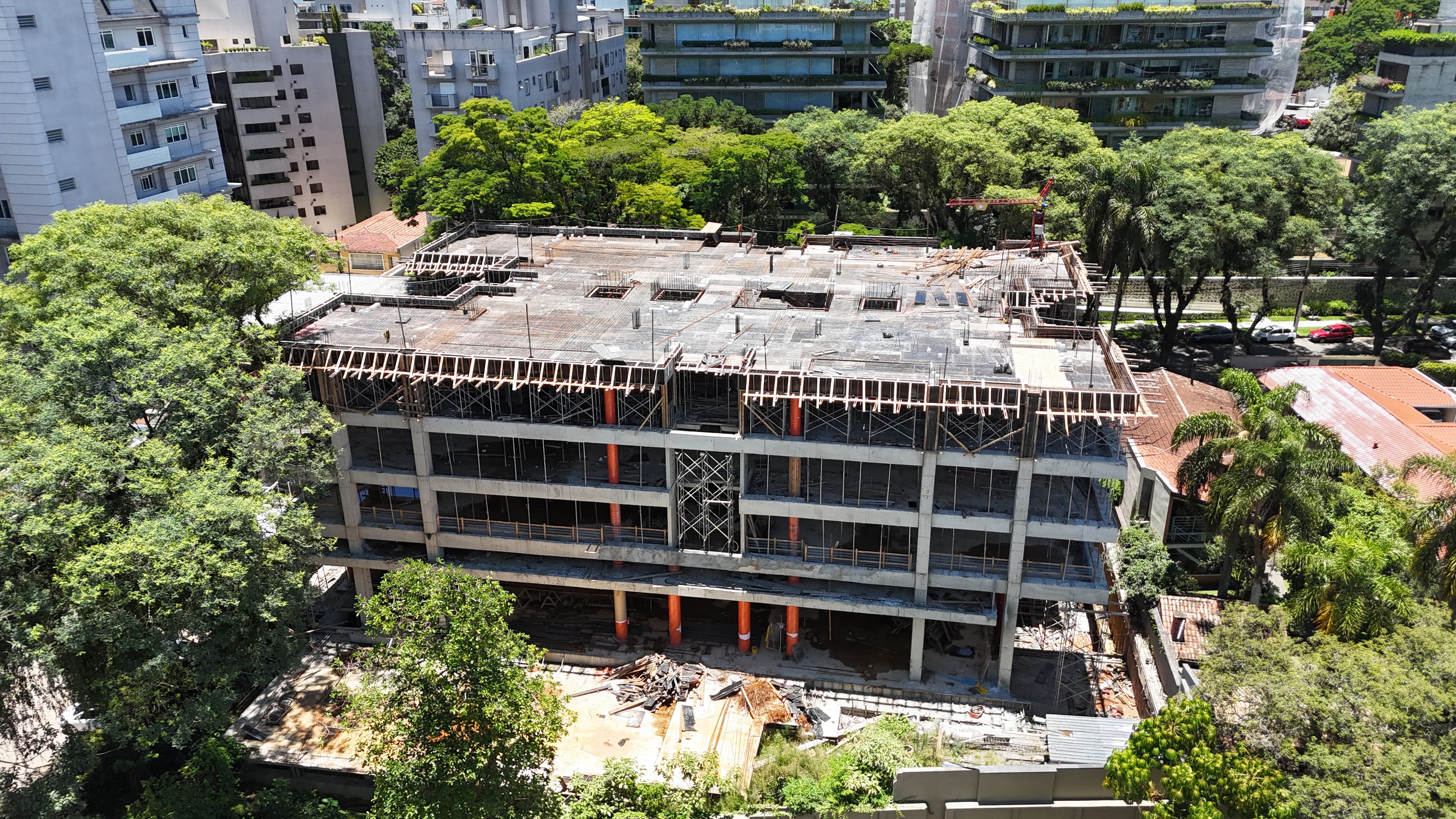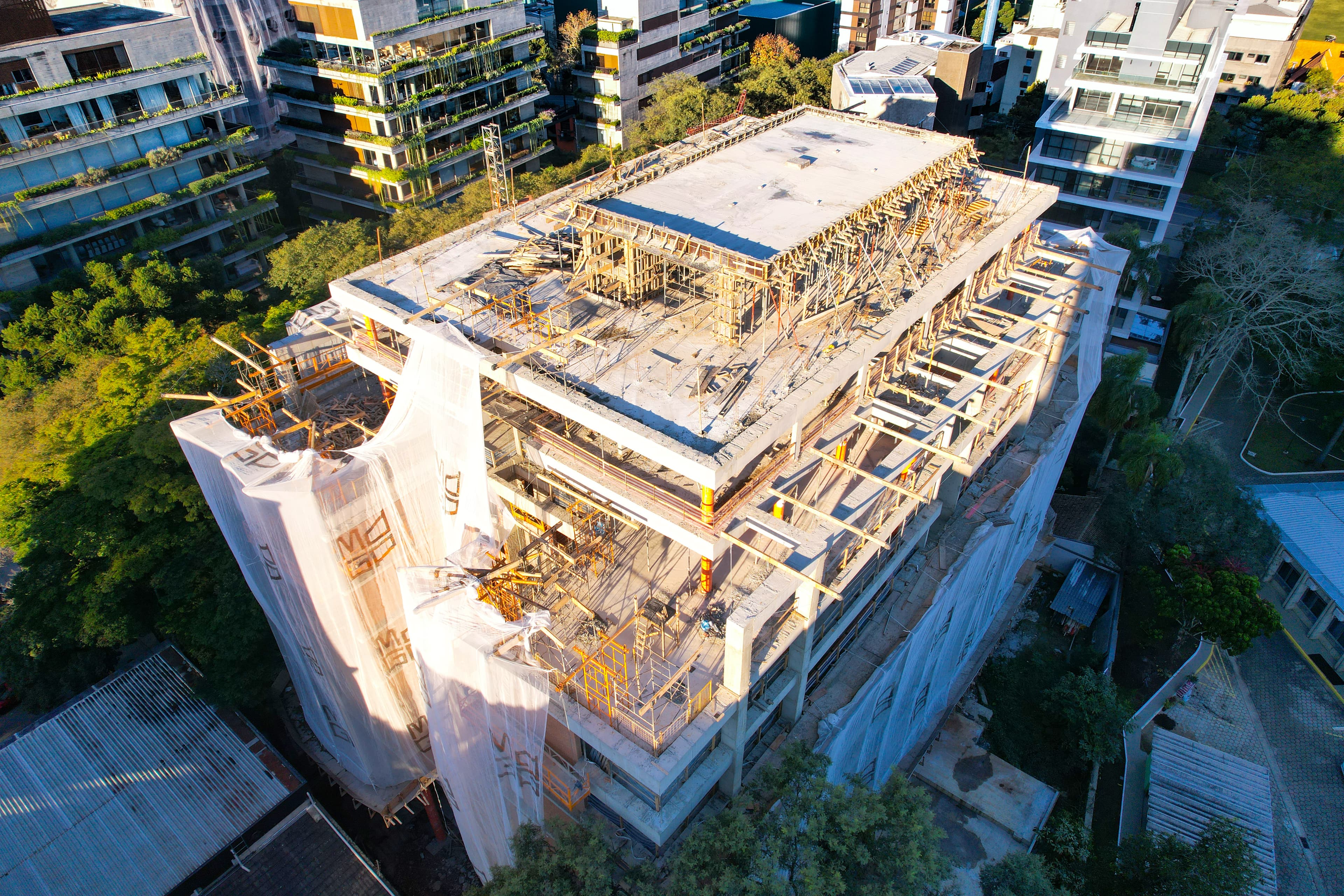 - O grande diferencial desse projeto é com certeza o vazio central, no coração do edifício, cujo a Arquiteura nos permitiu desenhar uma praça, com jardim, desenho de piso e mobiliários, transformando esse ambiente de estacionamento que normalmente é um lugar inóspito em um lugar de convívio e também contemplação.