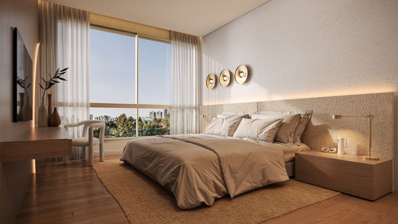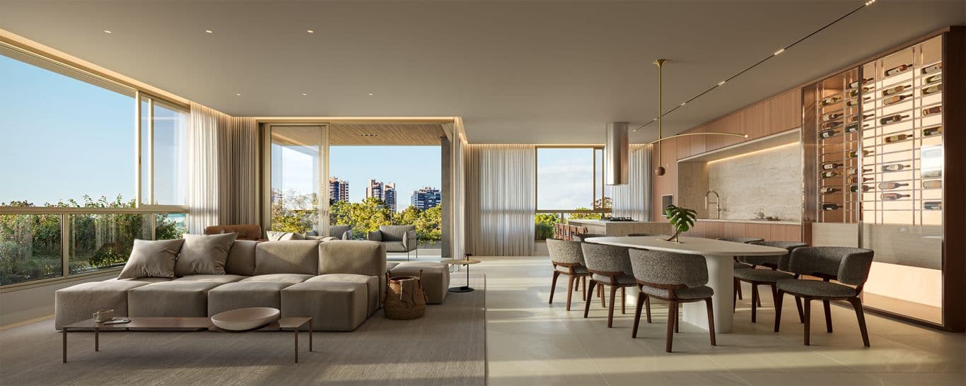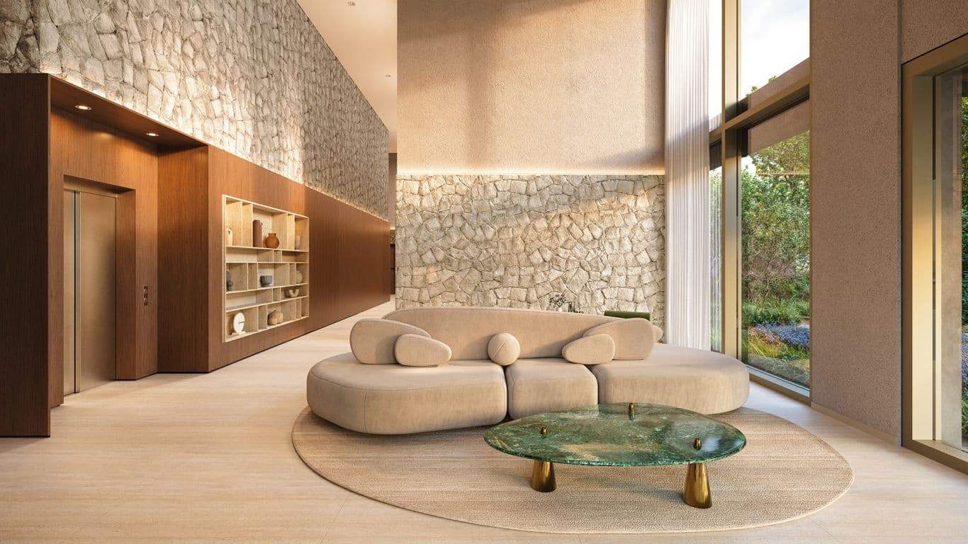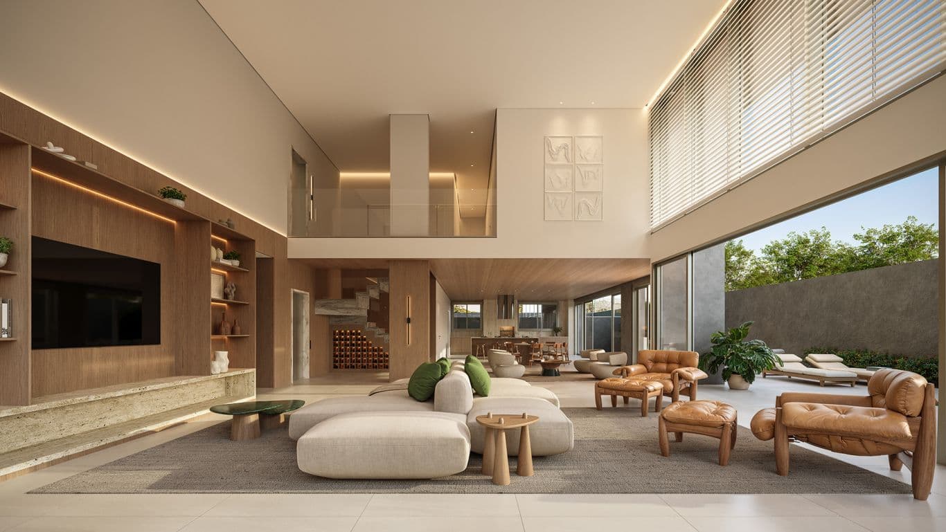- Os interiores conectam arquitetura e natureza com fluidez, por meio de materiais como madeira, pedra e tecidos naturais. A paleta é atemporal, os móveis têm desenho orgânico, e a luz natural se integra de forma inteligente aos espaços.